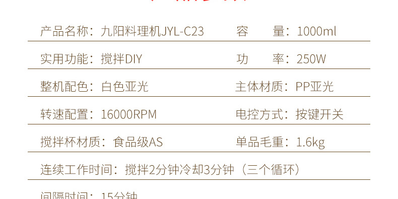 九阳(Joyoung)料理机 榨汁机榨汁杯婴儿辅食机绞肉机研磨搅拌机果汁机小米糊JYL-C23
