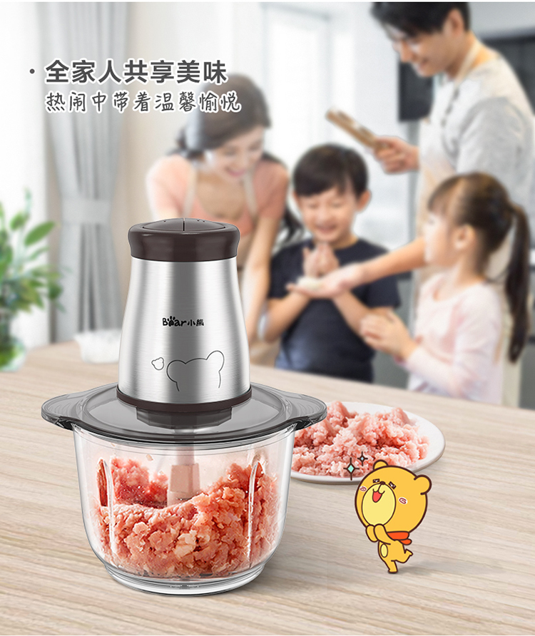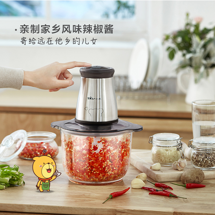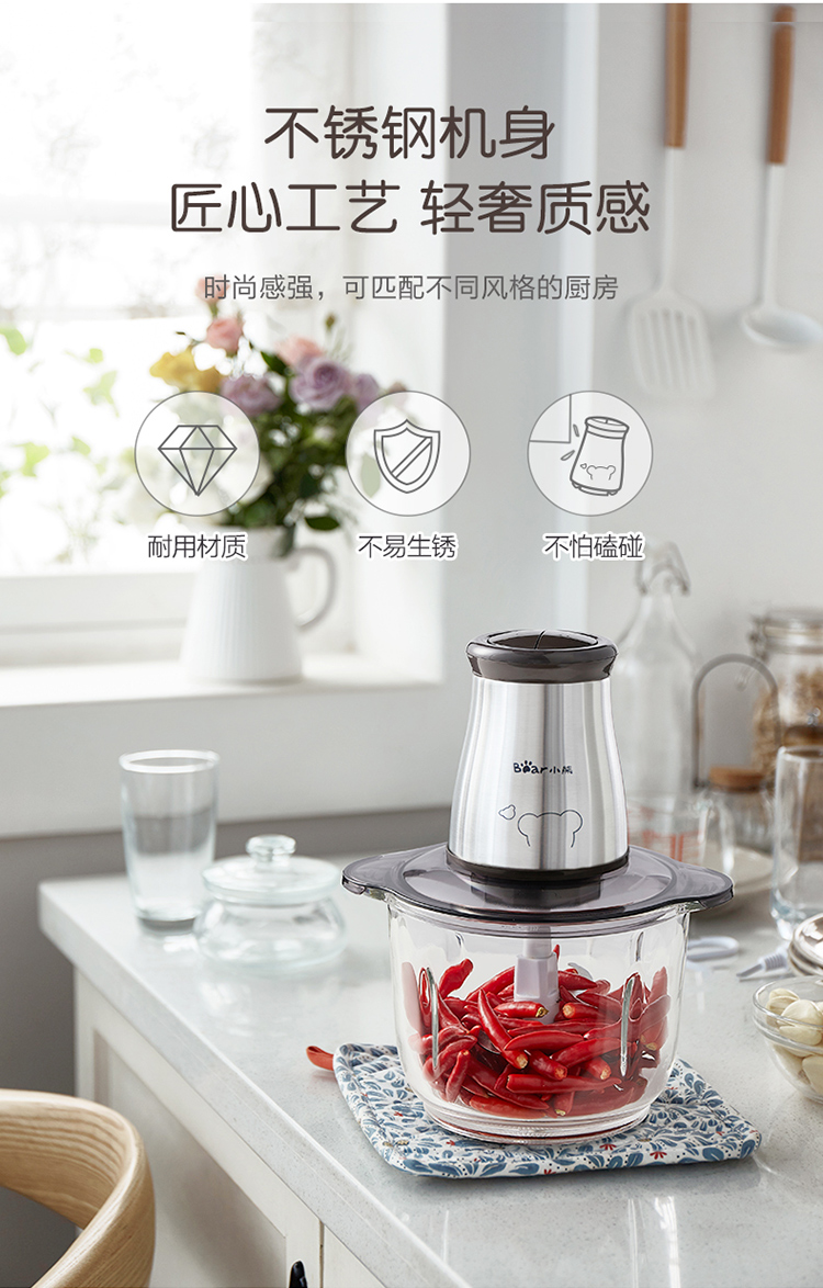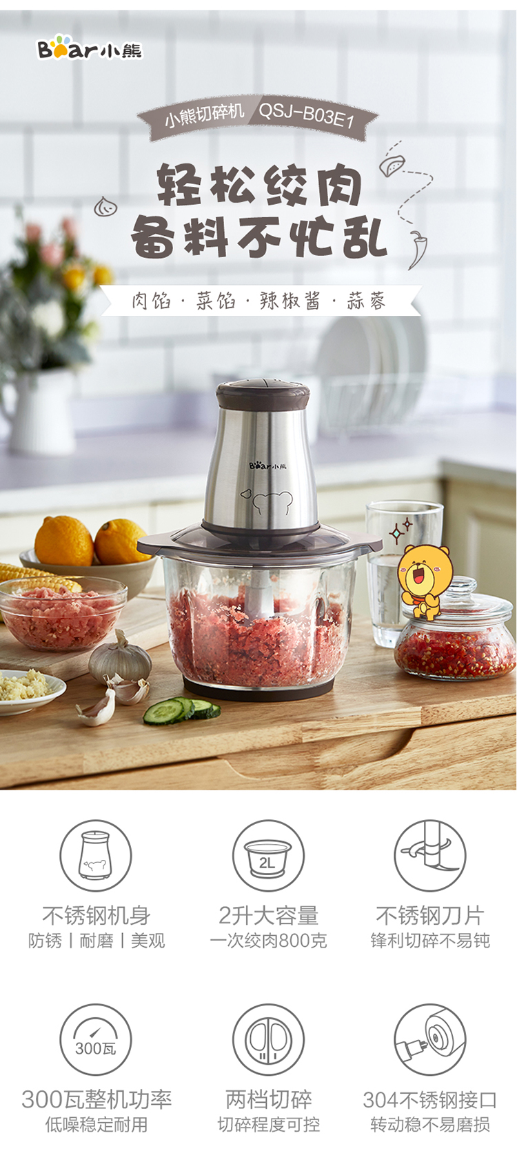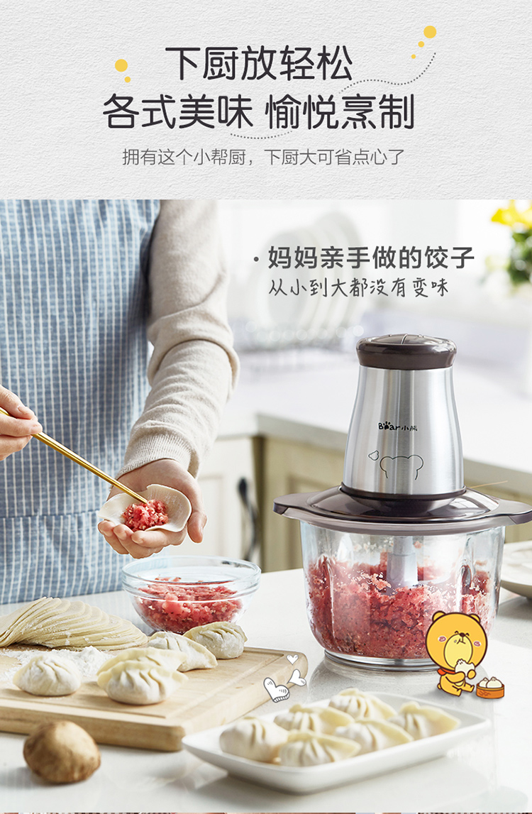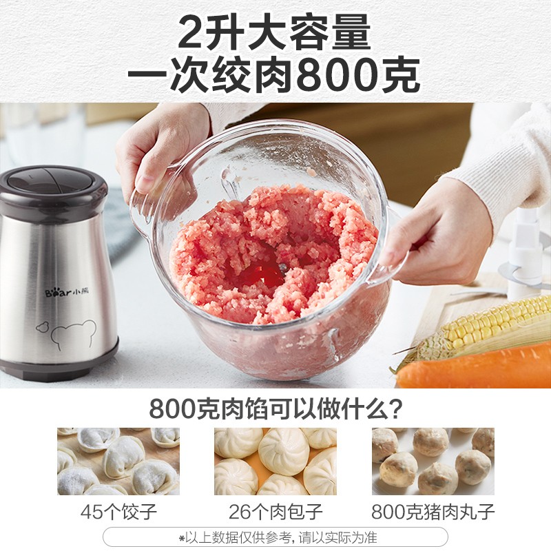 小熊(Bear)绞肉机家用 绞馅机 碎肉机 电动多功能料理搅拌打肉饺子肉馅蒜蓉机不锈钢 搅肉机QSJ-B03E1 2L