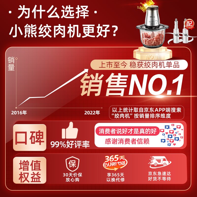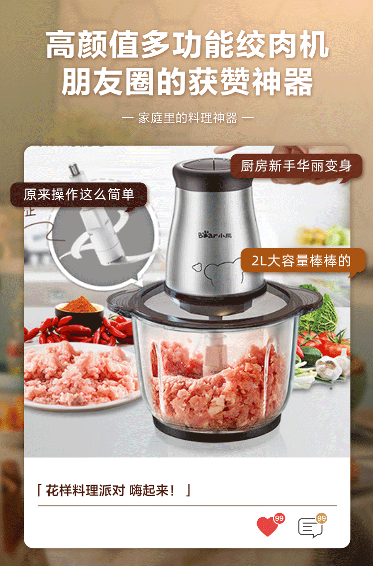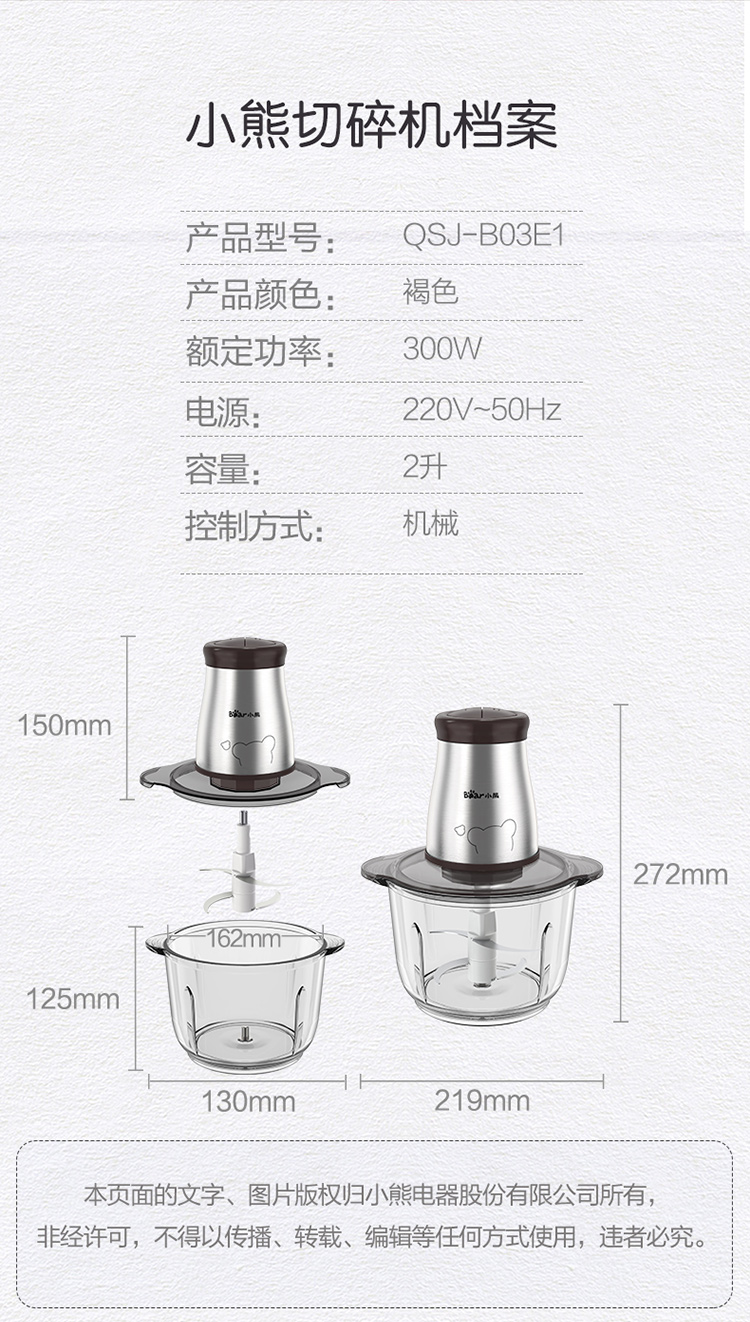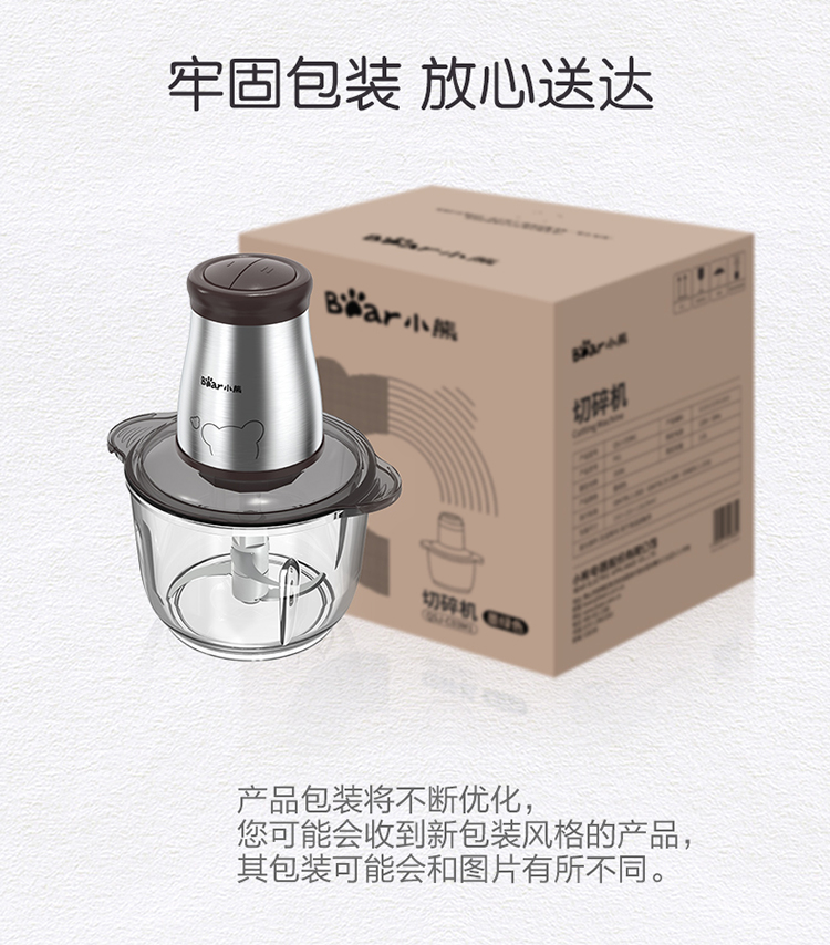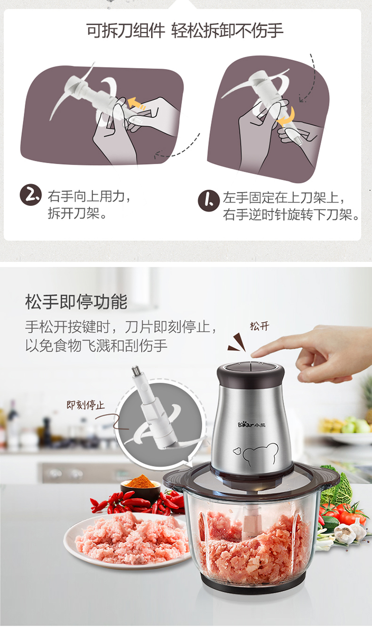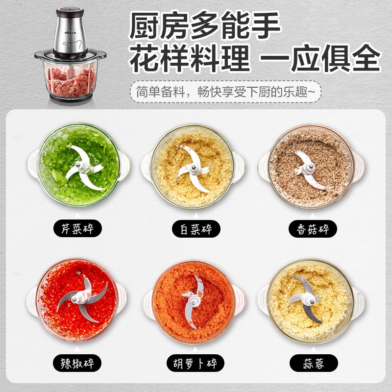 小熊(Bear)绞肉机家用 绞馅机 碎肉机 电动多功能料理搅拌打肉饺子肉馅蒜蓉机不锈钢 搅肉机QSJ-B03E1 2L