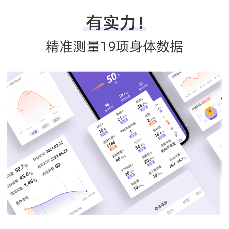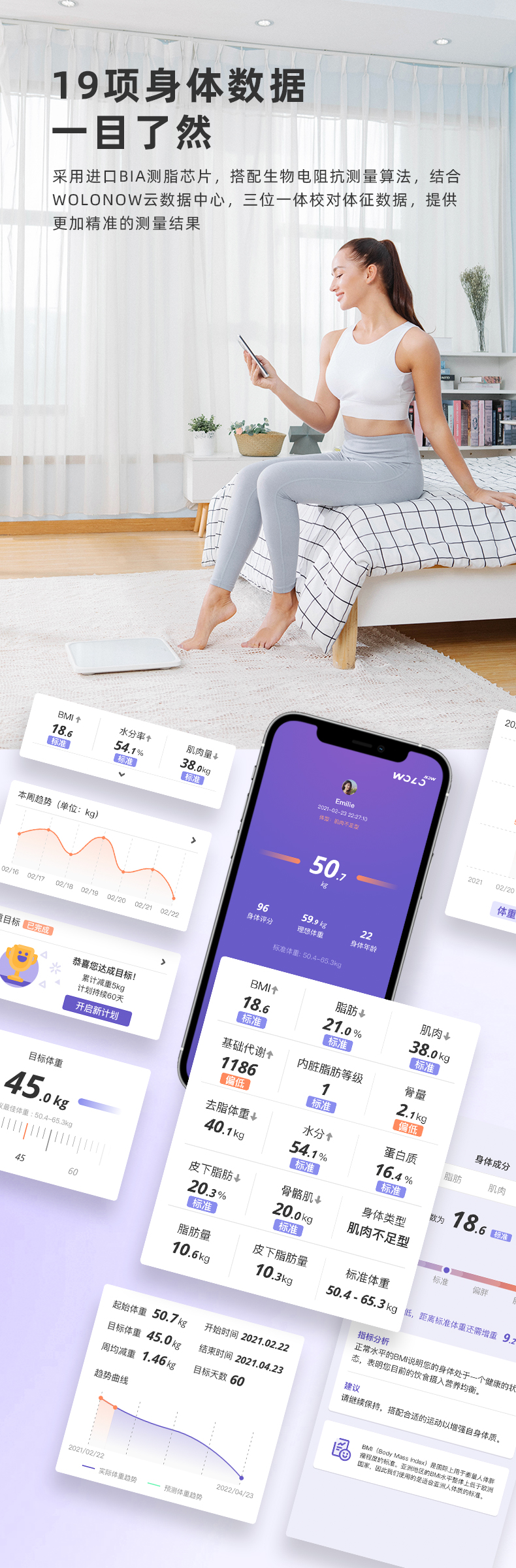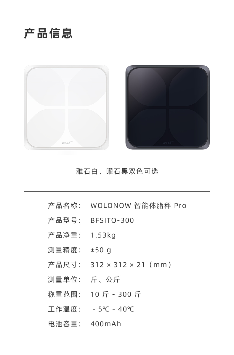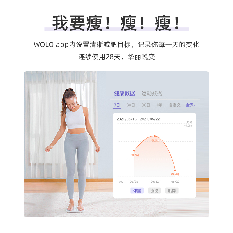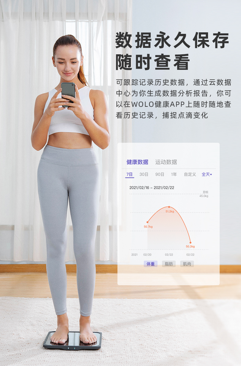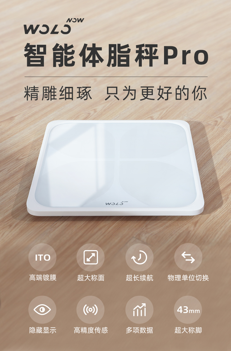 小米有品 沃乐WOLO充电款智能电子体脂秤Pro 可连APP