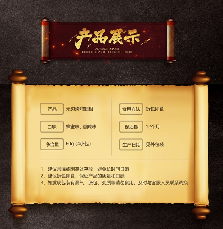 无穷 烤鸡翅根 蜂蜜香辣两种 60g*2袋