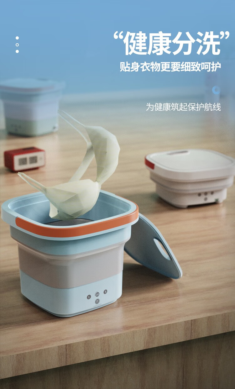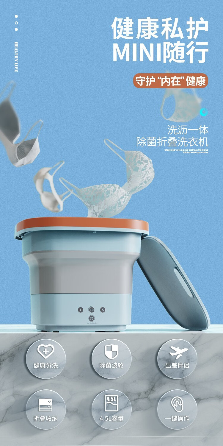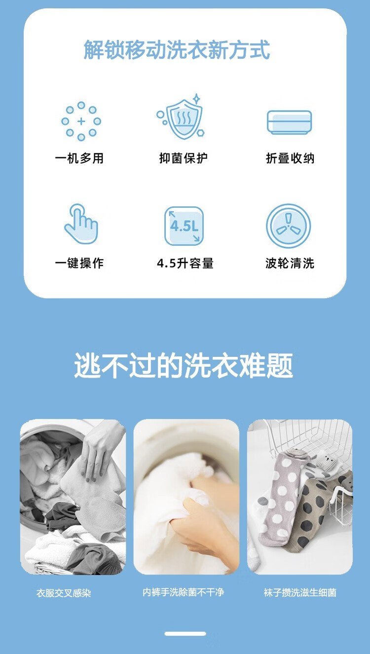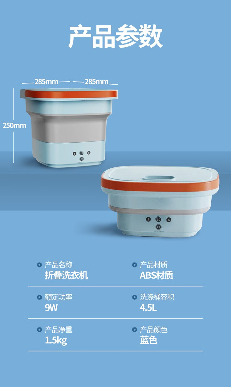 梦多福 折叠洗衣机迷你洗衣机小型宿舍洗袜子机带脱水洗内衣裤神器便携宝宝家用学生半自动清洗机洗脱一体 威尼斯蓝(洗涤+甩干)4.5L标准款