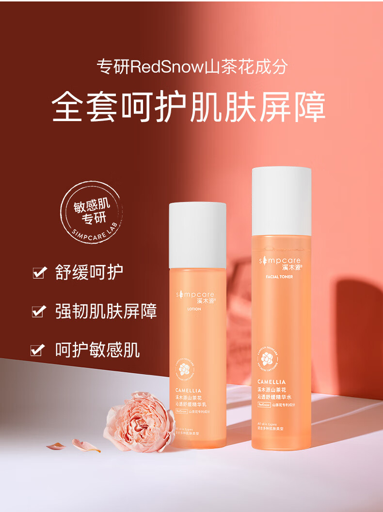 溪木源山茶花沁透舒缓水乳4件套(精华水+精华乳+旅行2件套)敏感肌补水保湿礼盒礼物送女友