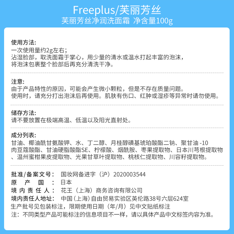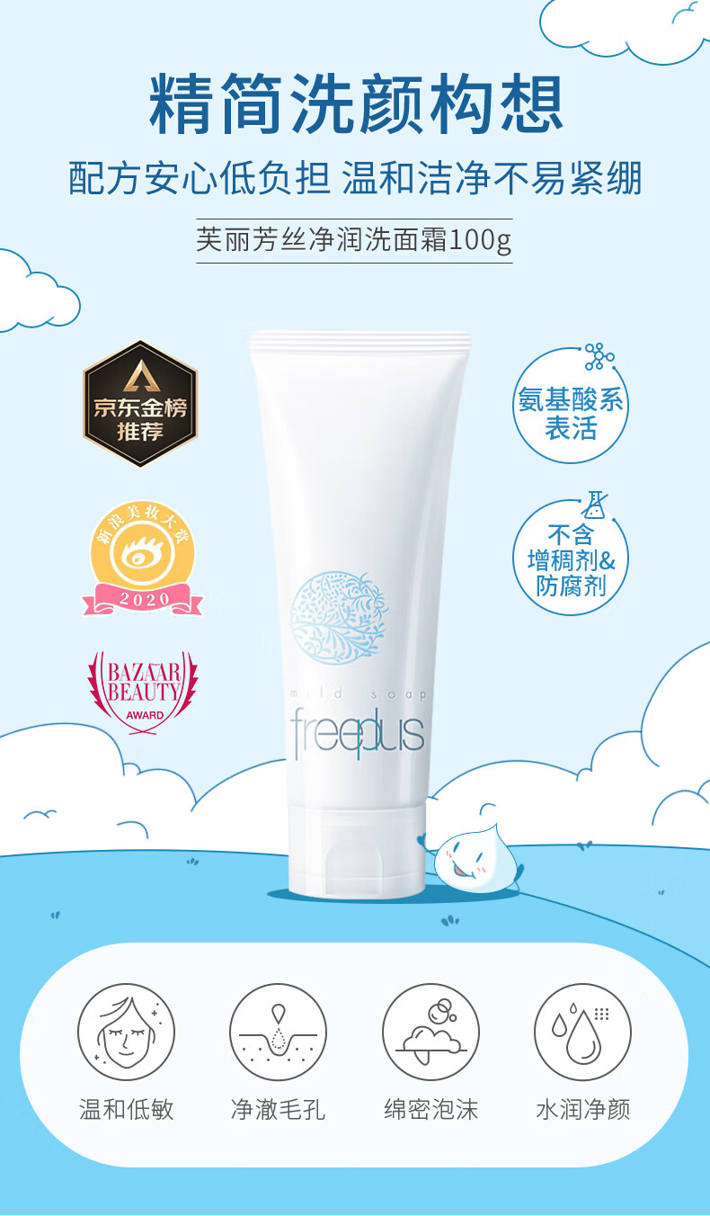 芙丽芳丝洗面奶氨基酸系洁面freeplus男士女士100g