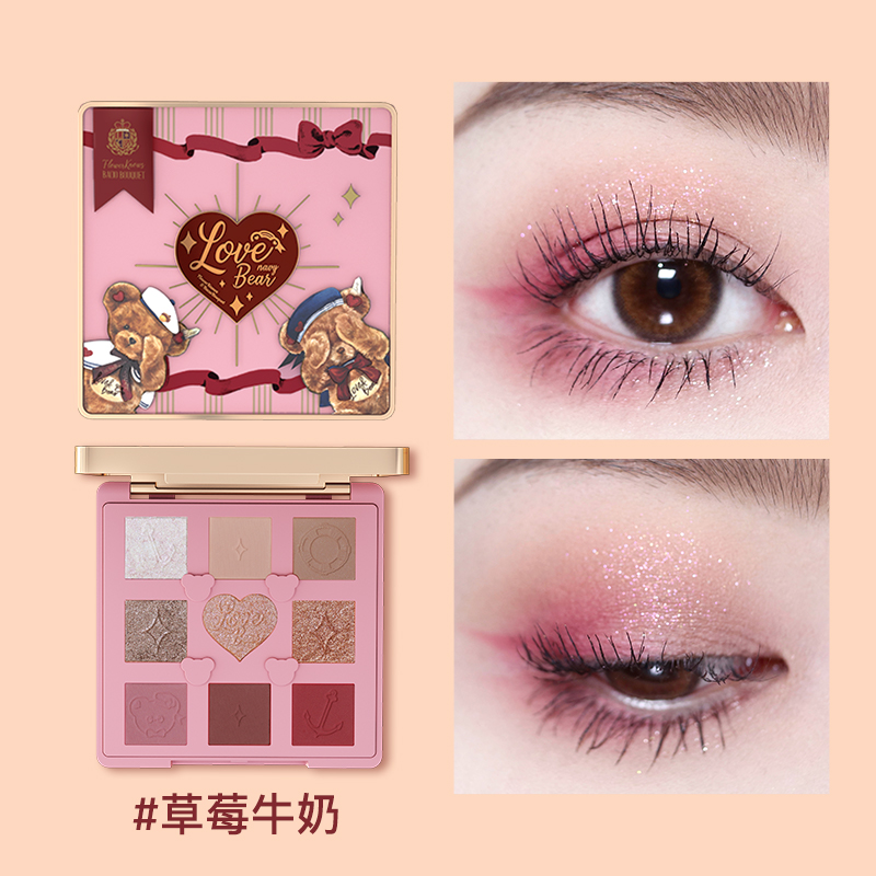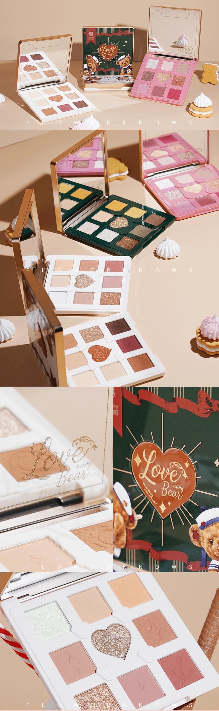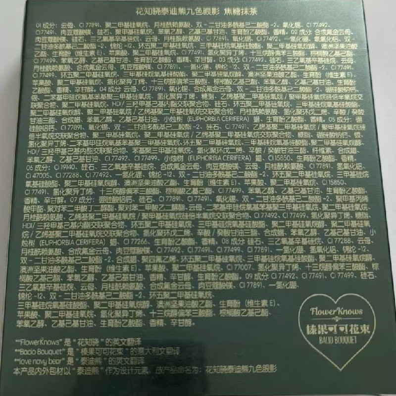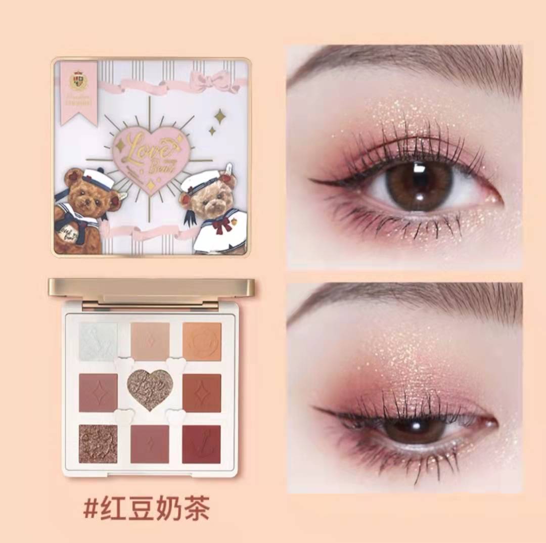 花知晓 眼影盘泰迪熊九色宫格细腻显色珠光变色龙大地色哑光