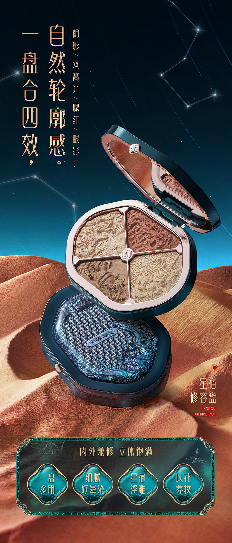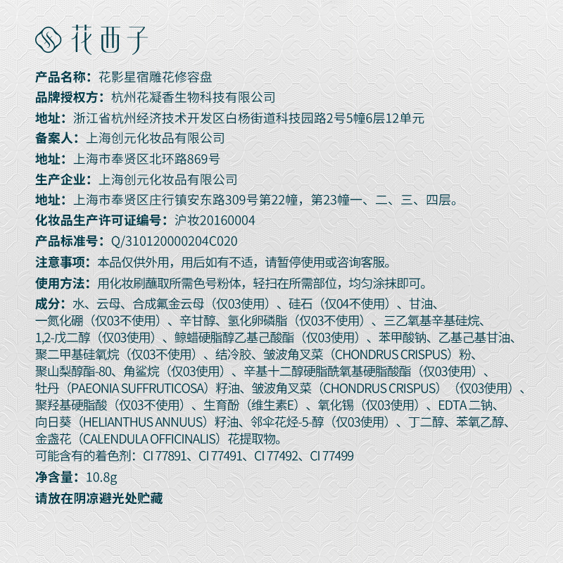 花西子星宿修容盘/自然立体鼻影修饰脸部提亮哑光高光一体盘 花影星宿雕花修容盘10.8g