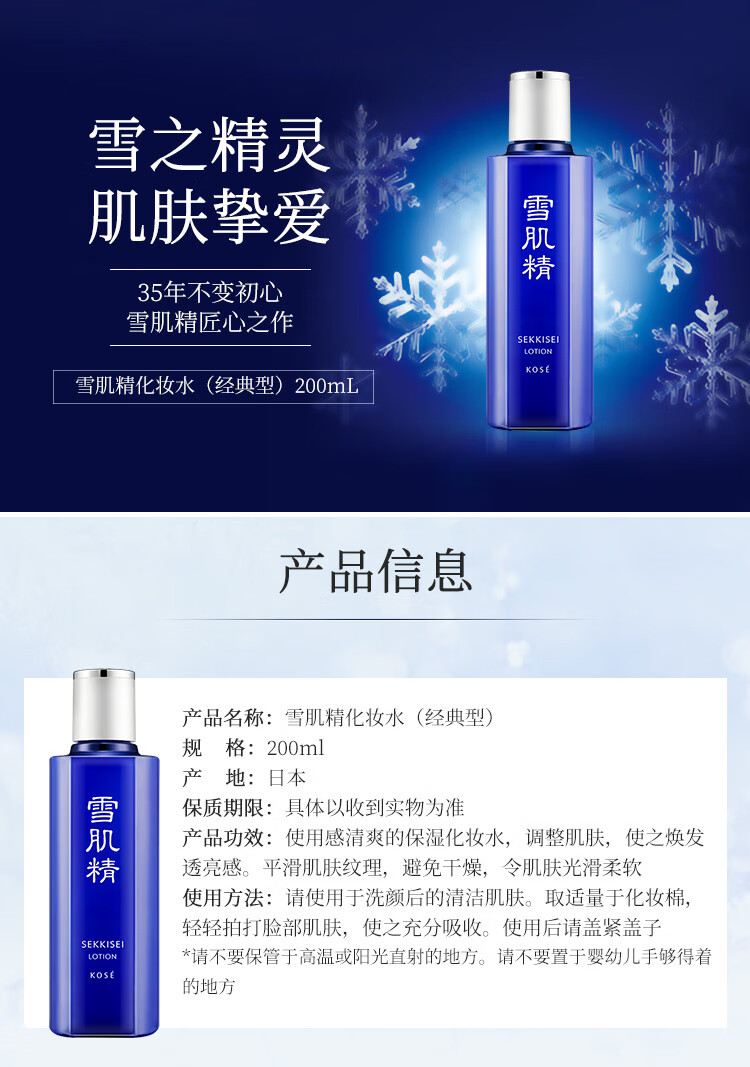 雪肌精SEKKISEI 化妆水经典型200ml 补水保湿爽肤水 送人礼物