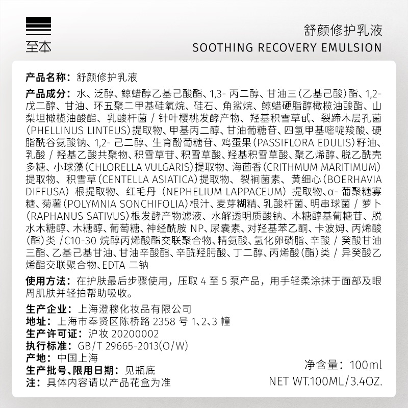 至本 舒颜修护乳液 100ml 舒缓密集修护水润滋润保湿不油腻面部乳霜