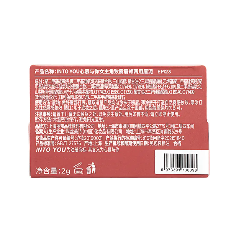 INTO YOU唇泥 唇颊两用哑光雾面丝绒口红唇釉唇彩 2g