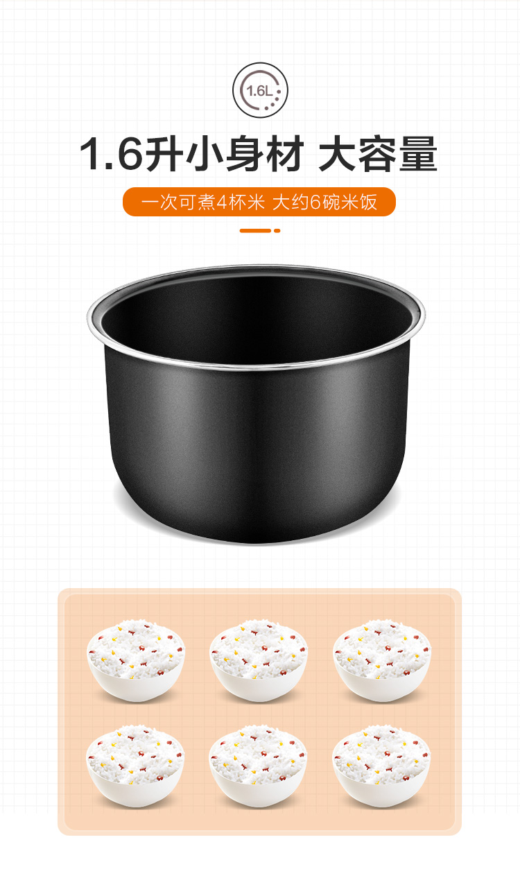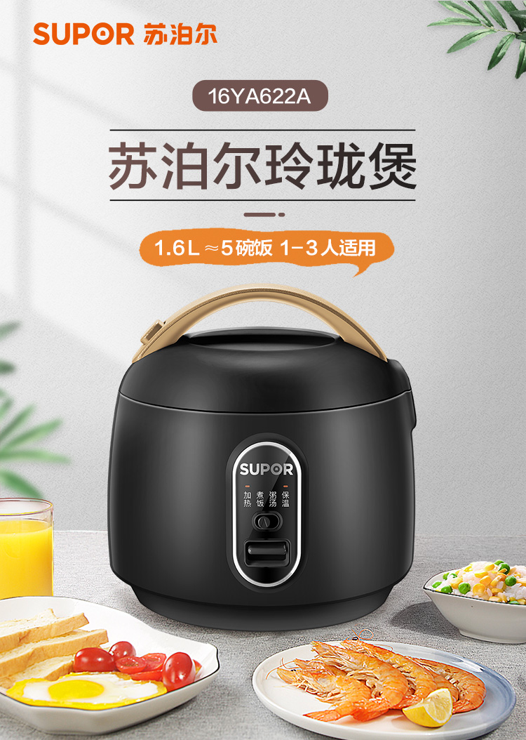 苏泊尔(SUPOR)电饭煲电饭锅1.6L迷你1-2人学生宿舍用300W全自动多功能智能小电饭煲黑色SF16YA622A