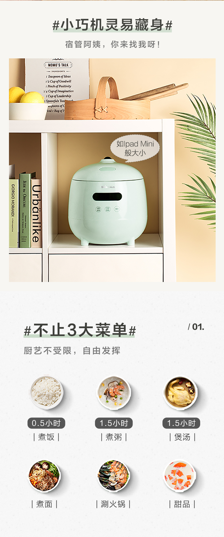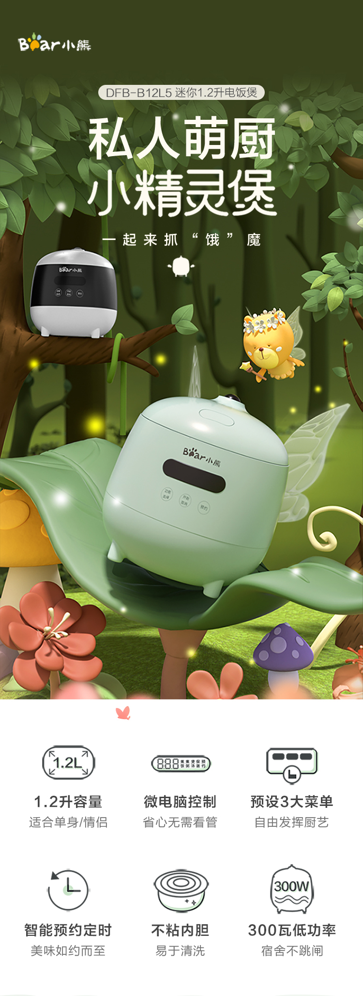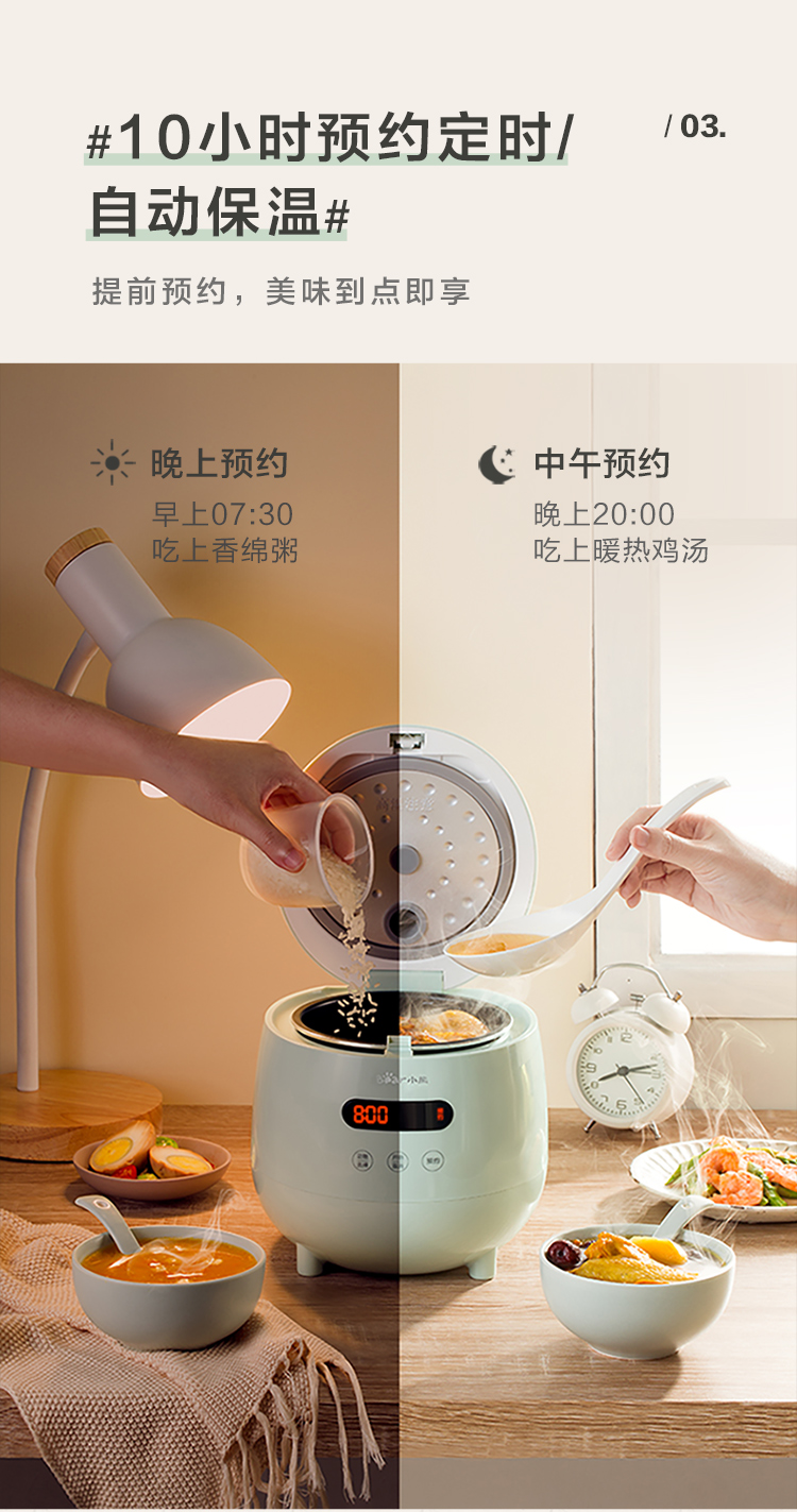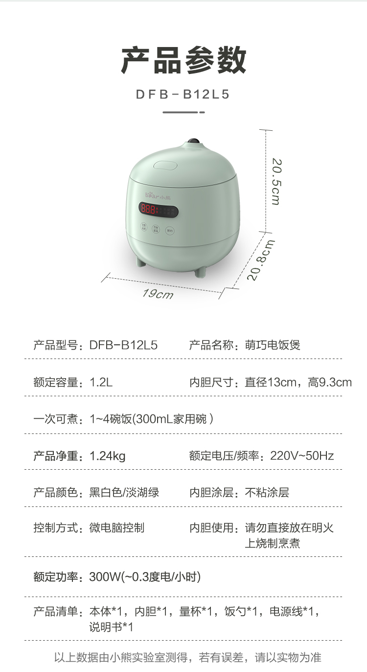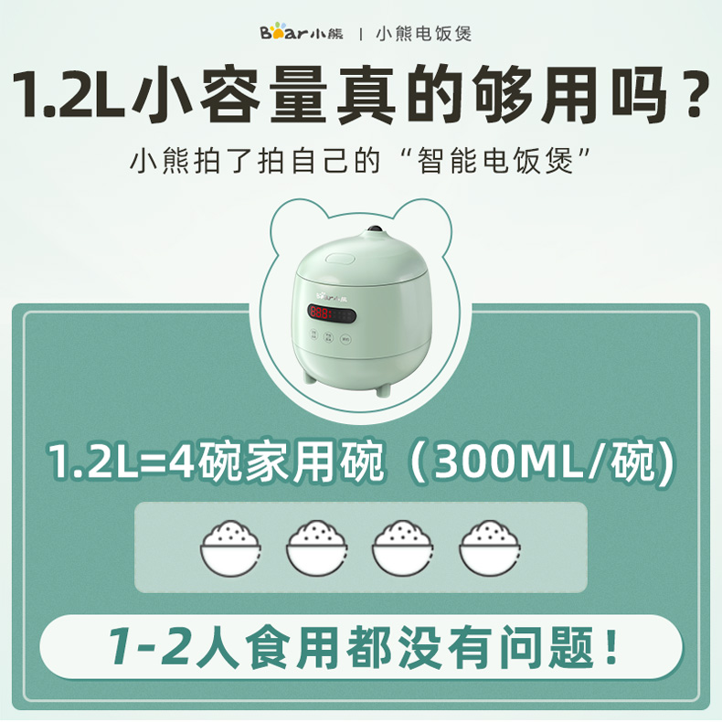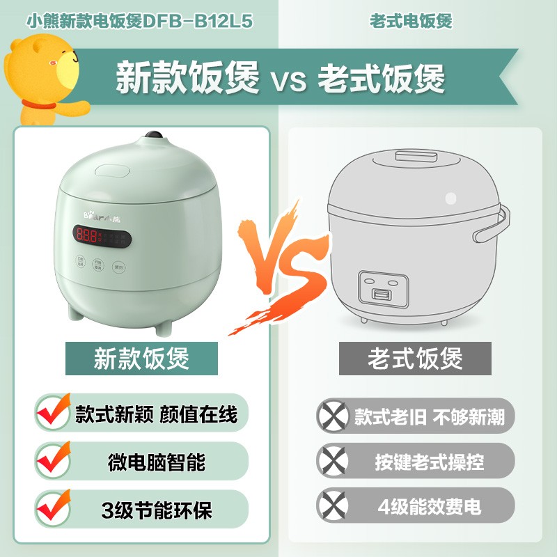 小熊(Bear)电饭煲 电饭锅小2人家用智能预约1.2L多功能迷你宿舍小锅米饭锅 DFB-B12L5