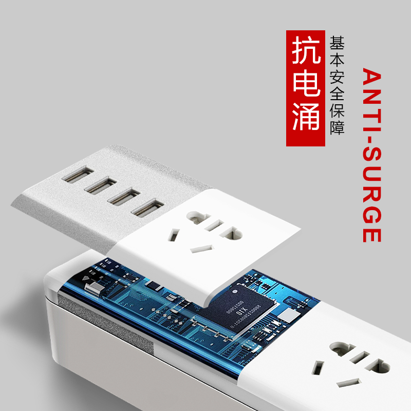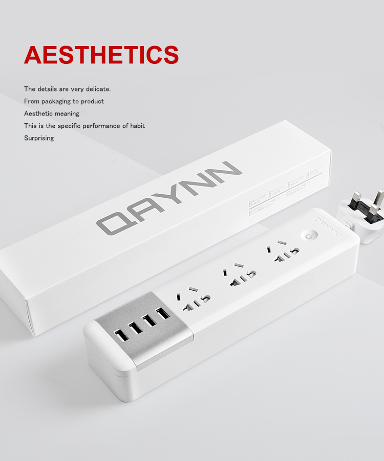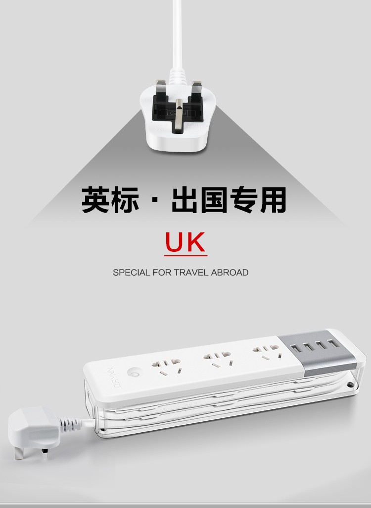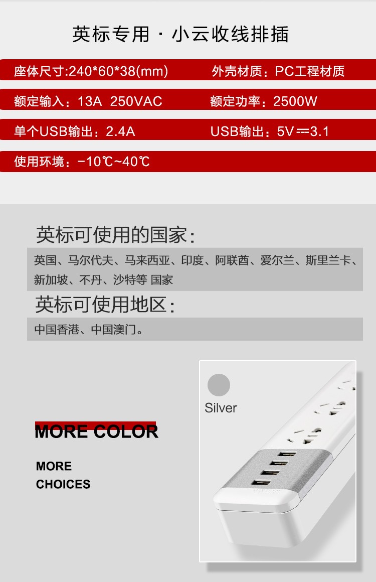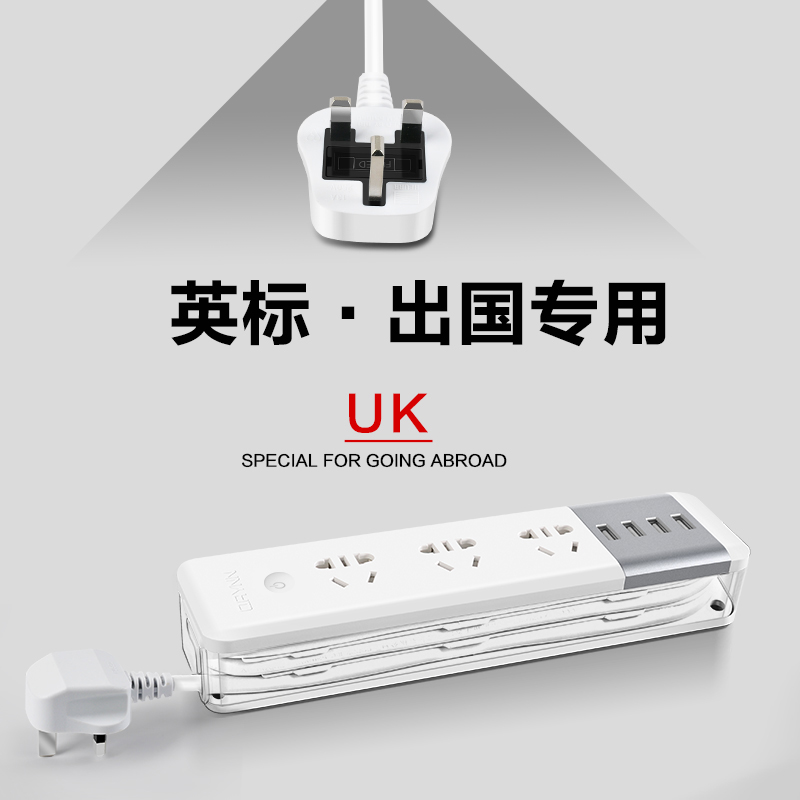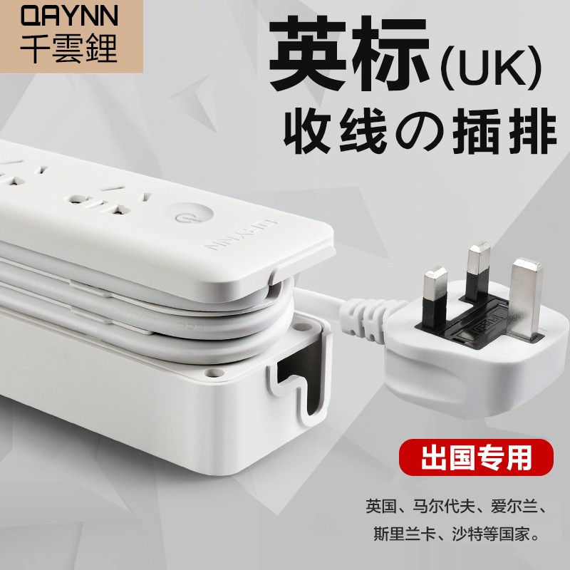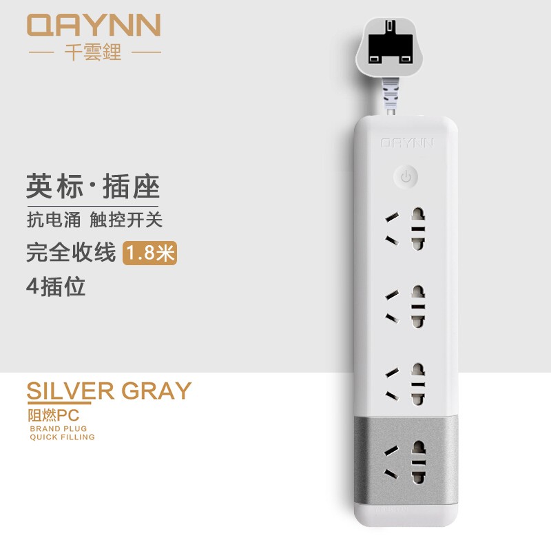 QAYNN 千云锂英标接线板 插座出国留学英国转换插头排插拖线板 英标流光银 1.8米4插防雷