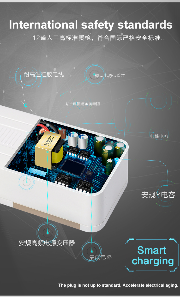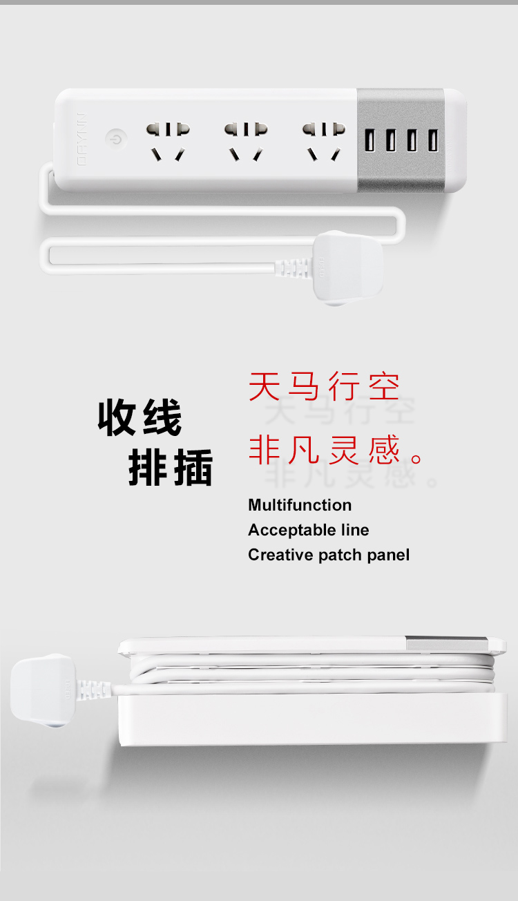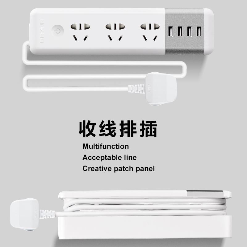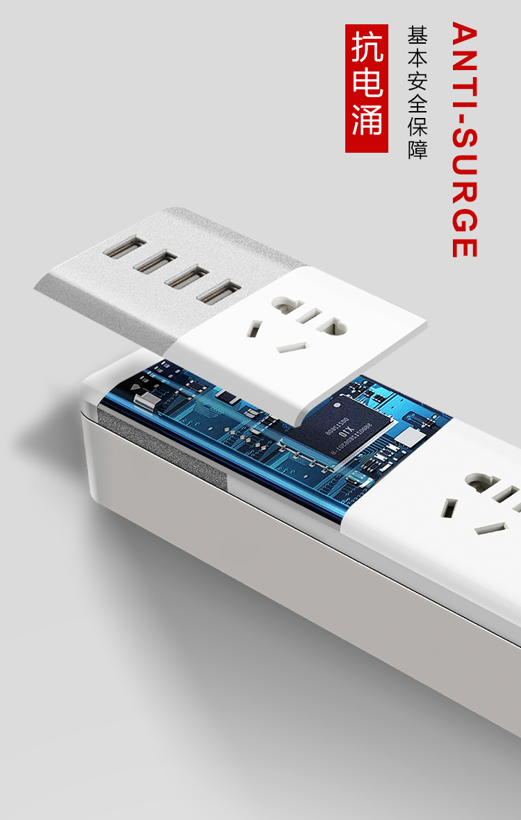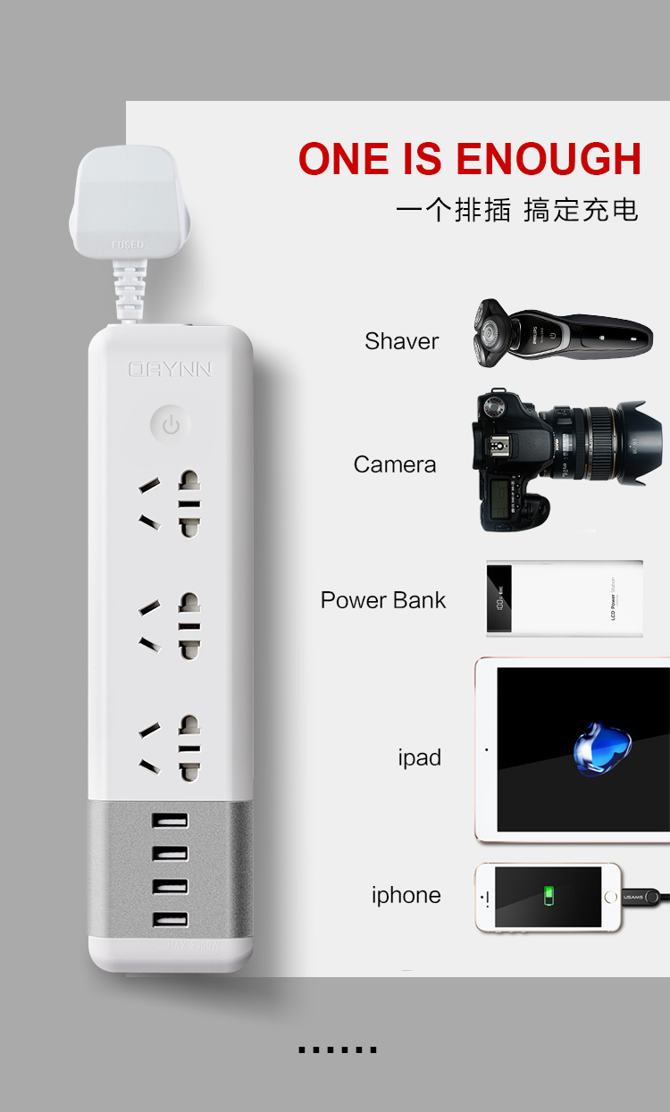 QAYNN 千云锂英标接线板 插座出国留学英国转换插头排插拖线板 英标流光银 1.8米4插防雷