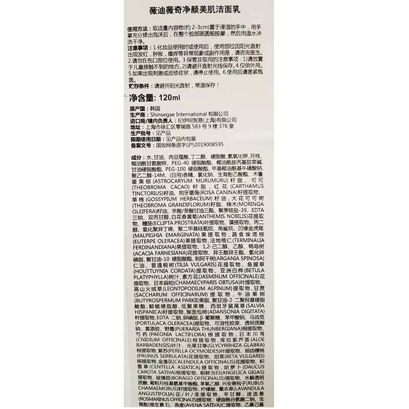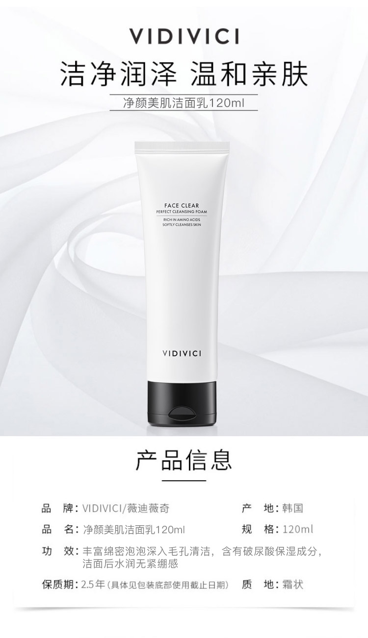 VIDIVICI薇迪薇奇净颜美肌洁面乳 韩国女神洗面奶VDVC氨基酸泡沫洁面乳清洁补水保湿控油不敏感120ml/瓶